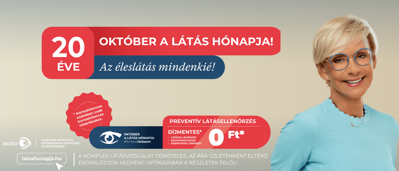 Október 1-től csatlakozunk a Magyar Látszerész Szövetség és az optikai szakma által megrendezett országos Látás Hónapja kampányhoz. Foglaljon időpontot szakértőinkhez!